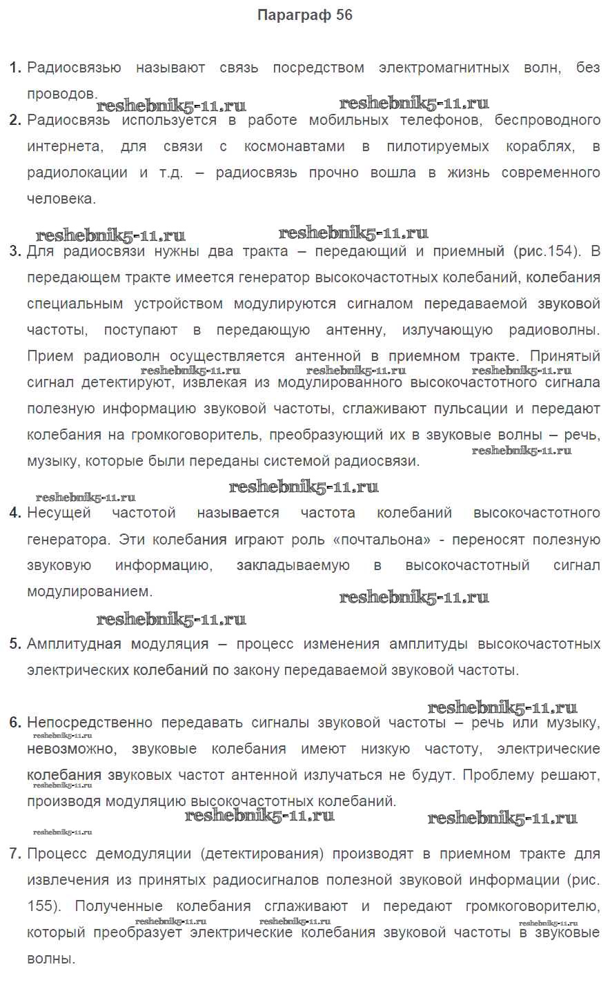 Готовая домашняя работа с ответами по Физике за 9 класс Перышкин, Гутник Учебник Дрофа 2014 ФГОС - Параграфы 56