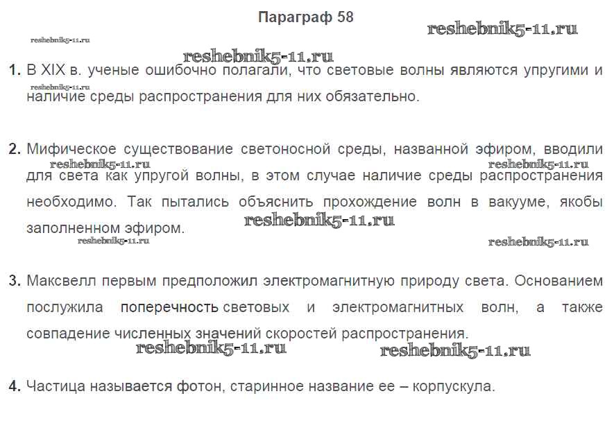 Готовая домашняя работа с ответами по Физике за 9 класс Перышкин, Гутник Учебник Дрофа 2014 ФГОС - Параграфы 58
