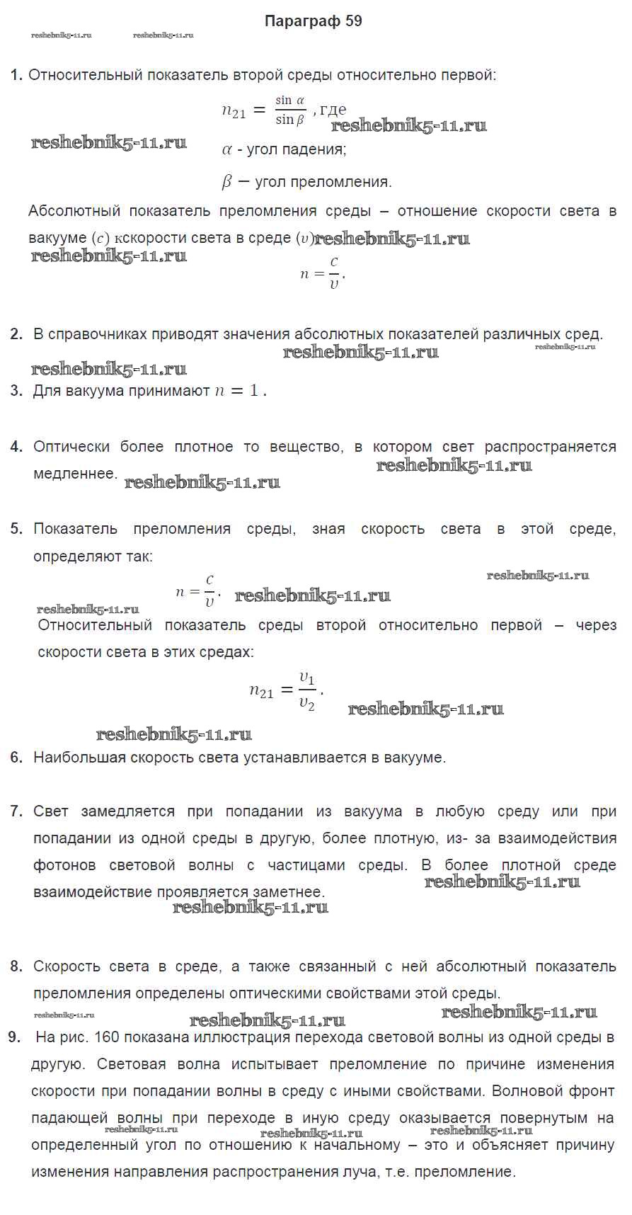 Готовая домашняя работа с ответами по Физике за 9 класс Перышкин, Гутник Учебник Дрофа 2014 ФГОС - Параграфы 59