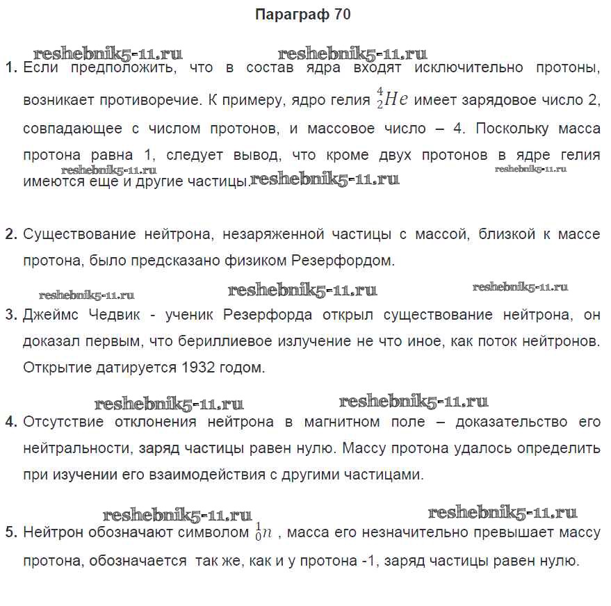 Готовая домашняя работа с ответами по Физике за 9 класс Перышкин, Гутник Учебник Дрофа 2014 ФГОС - Параграфы 70