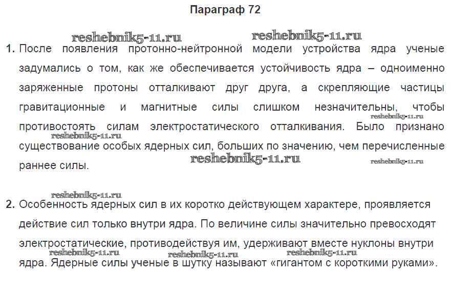 Готовая домашняя работа с ответами по Физике за 9 класс Перышкин, Гутник Учебник Дрофа 2014 ФГОС - Параграфы 72