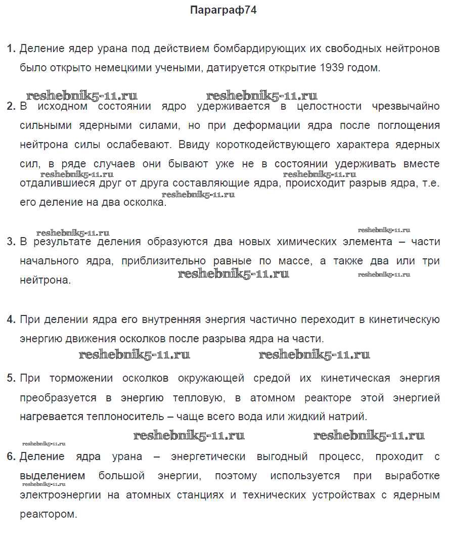 Готовая домашняя работа с ответами по Физике за 9 класс Перышкин, Гутник Учебник Дрофа 2014 ФГОС - Параграфы 74