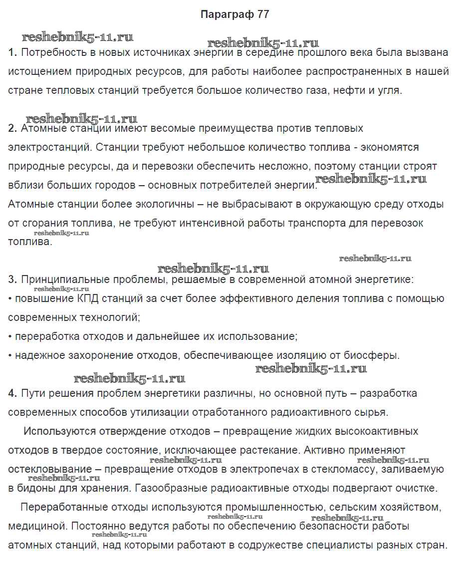 Готовая домашняя работа с ответами по Физике за 9 класс Перышкин, Гутник Учебник Дрофа 2014 ФГОС - Параграфы 77