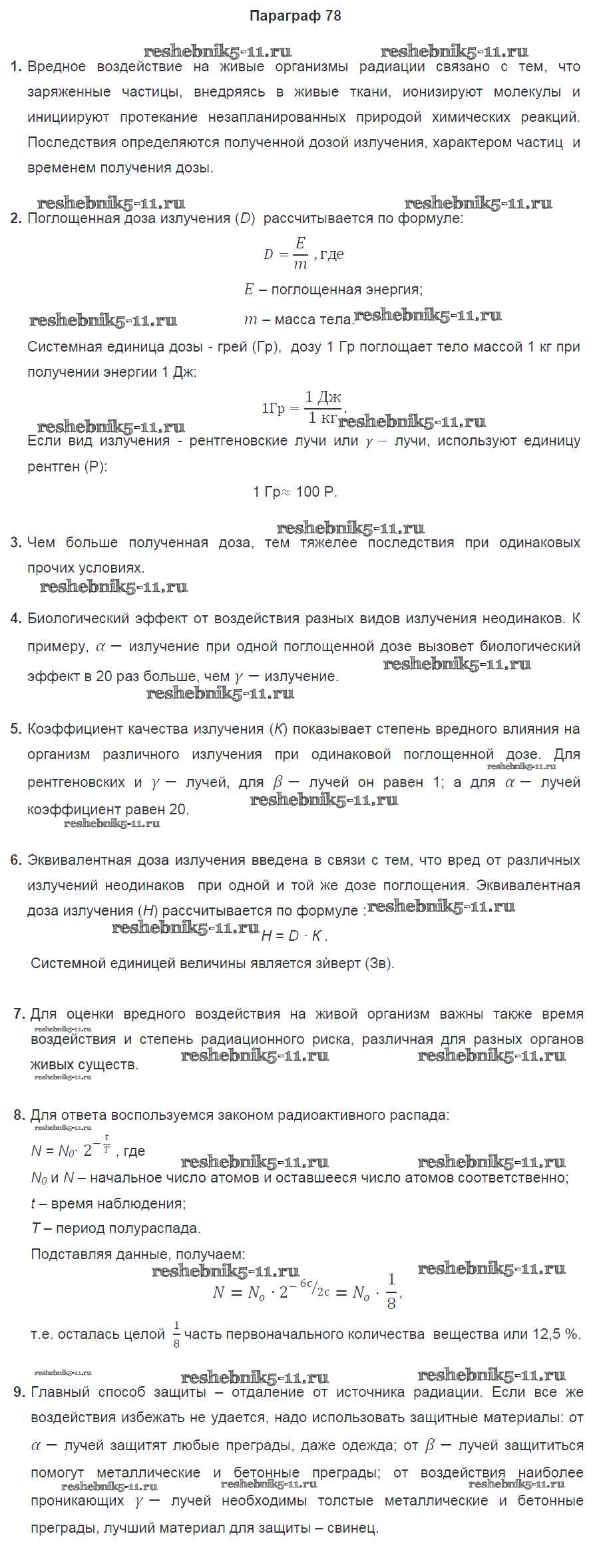 Готовая домашняя работа с ответами по Физике за 9 класс Перышкин, Гутник Учебник Дрофа 2014 ФГОС - Параграфы 78