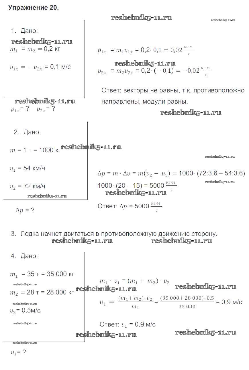 Готовая домашняя работа с ответами по Физике за 9 класс Перышкин, Гутник Учебник Дрофа 2014 ФГОС - Упражнения 20