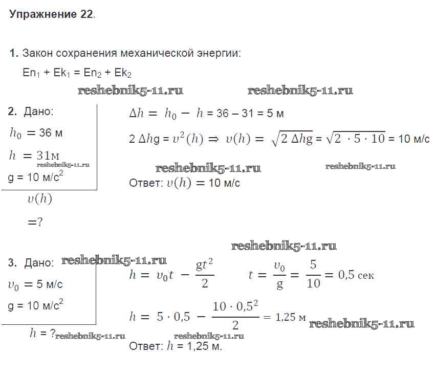 Готовая домашняя работа с ответами по Физике за 9 класс Перышкин, Гутник Учебник Дрофа 2014 ФГОС - Упражнения 22
