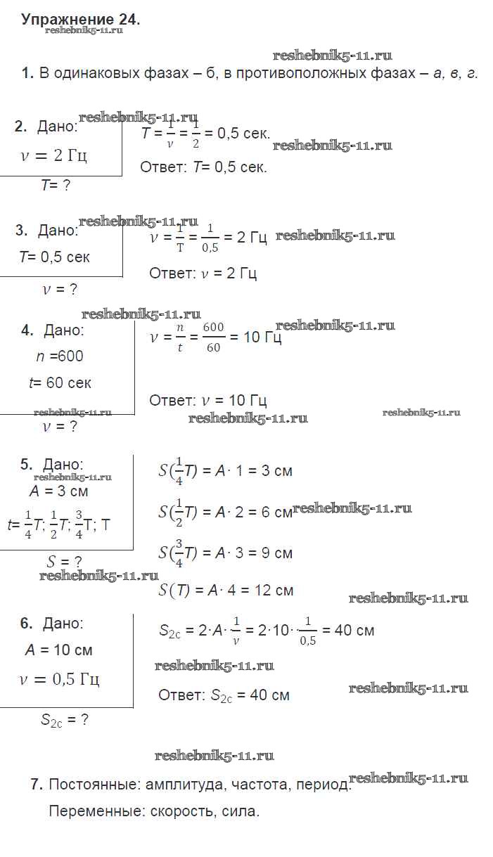 Готовая домашняя работа с ответами по Физике за 9 класс Перышкин, Гутник Учебник Дрофа 2014 ФГОС - Упражнения 24