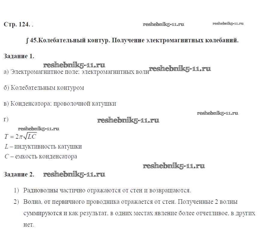 Готовая домашняя работа с ответами по Физике за 9 класс Перышкин, Лонцова Рабочая тетрадь УМК Экзамен 2017 ФГОС - Страницы 124