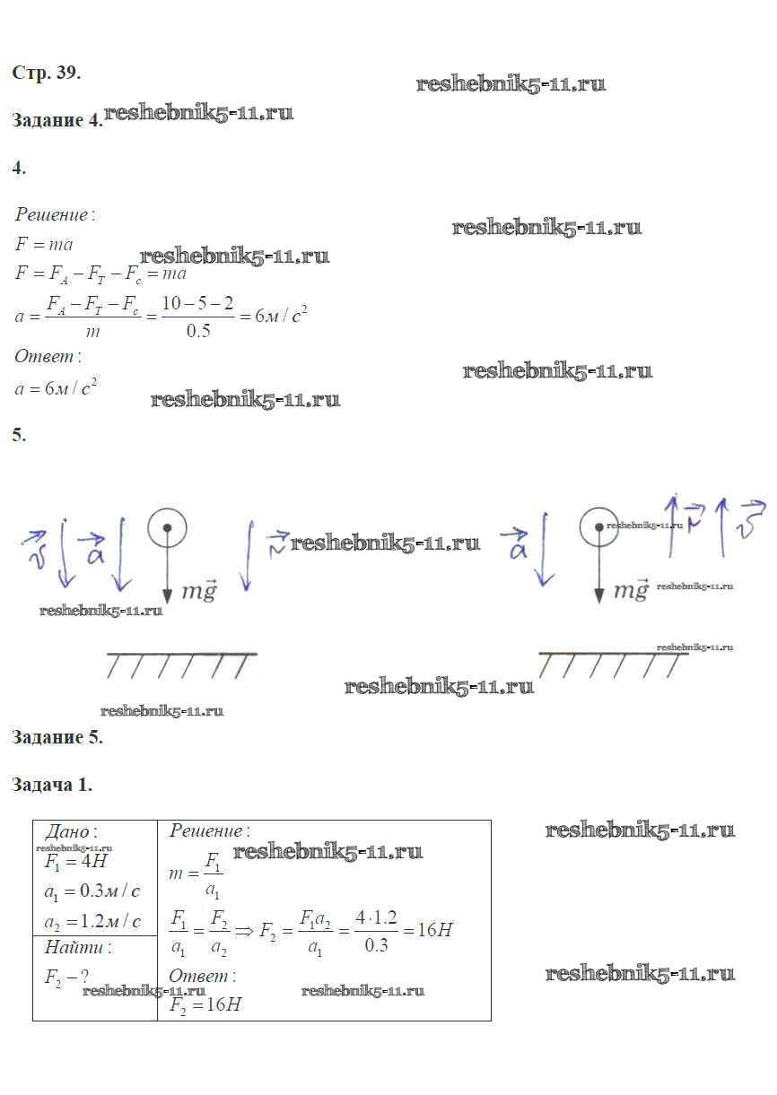 Готовая домашняя работа с ответами по Физике за 9 класс Перышкин, Лонцова Рабочая тетрадь УМК Экзамен 2017 ФГОС - Страницы 39