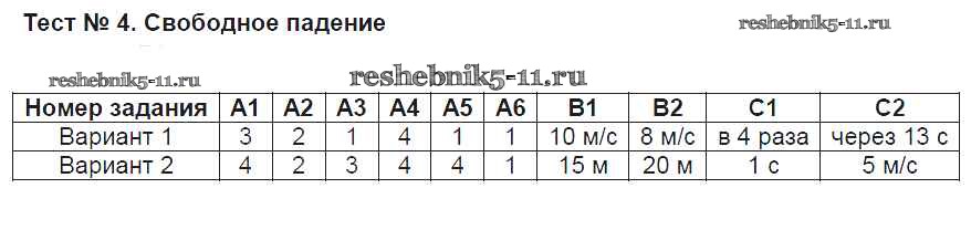 Готовая домашняя работа с ответами по Физике за 9 класс Лозовенко Контрольно-измерительные материалы (КИМ) ВАКО 2016 ФГОС - Тесты 4