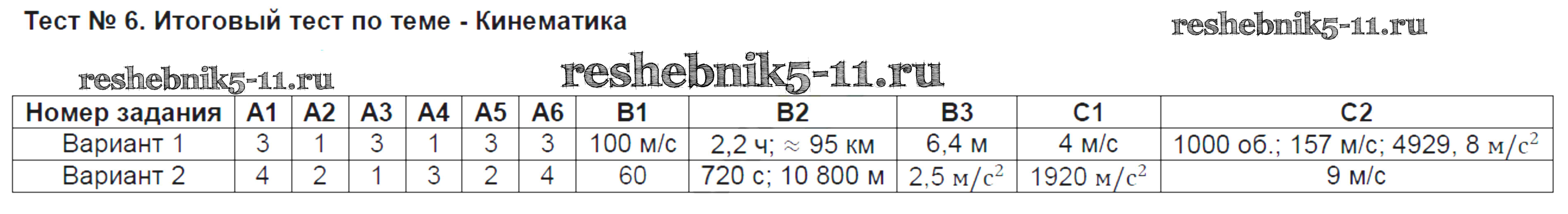 Готовая домашняя работа с ответами по Физике за 9 класс Лозовенко Контрольно-измерительные материалы (КИМ) ВАКО 2016 ФГОС - Тесты 6