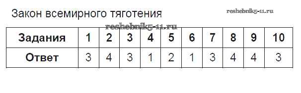 Готовая домашняя работа с ответами по Физике за 9 класс Громцева Тесты УМК Экзамен 2017 ФГОС - Глава 1. Законы взаимодействия и движения тел Закон всемирного тяготения