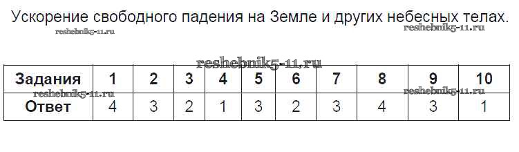 Готовая домашняя работа с ответами по Физике за 9 класс Громцева Тесты УМК Экзамен 2017 ФГОС - Глава 1. Законы взаимодействия и движения тел Ускорение свободного падения на Земле и других небесных телах
