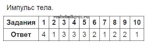 Готовая домашняя работа с ответами по Физике за 9 класс Громцева Тесты УМК Экзамен 2017 ФГОС - Глава 1. Законы взаимодействия и движения тел Импульс тела