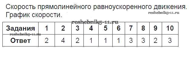 Готовая домашняя работа с ответами по Физике за 9 класс Громцева Тесты УМК Экзамен 2017 ФГОС - Глава 1. Законы взаимодействия и движения тел Скорость прямолинейного равноускоренного движения. График скорости