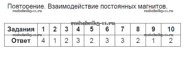 Готовая домашняя работа с ответами по Физике за 9 класс Громцева Тесты УМК Экзамен 2017 ФГОС - Глава 3. Электромагнитное поле Повторение. Взаимодействие постоянных магнитов