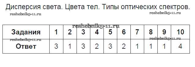 Готовая домашняя работа с ответами по Физике за 9 класс Громцева Тесты УМК Экзамен 2017 ФГОС - Глава 3. Электромагнитное поле Дисперсия света. Цвета тел. Типы оптических спектров