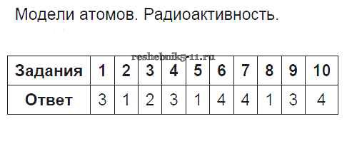 Готовая домашняя работа с ответами по Физике за 9 класс Громцева Тесты УМК Экзамен 2017 ФГОС - Глава 4. Строение атома и атомного ядра Радиоактивность. Модели атомов