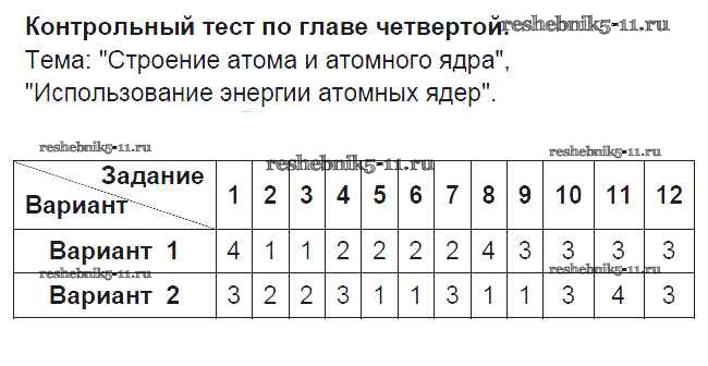 Готовая домашняя работа с ответами по Физике за 9 класс Громцева Тесты УМК Экзамен 2017 ФГОС - Глава 4. Строение атома и атомного ядра Контрольный тест