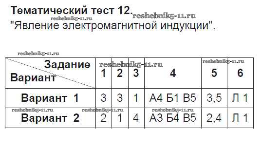 Готовая домашняя работа с ответами по Физике за 9 класс Слепнева Тесты Дрофа 2016 ФГОС - Тематические тесты 12
