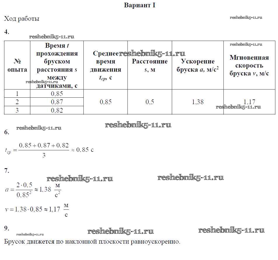 Готовая домашняя работа с ответами по Физике за 9 класс Минькова, Иванова Тетрадь для лабораторных работ УМК Экзамен 2017 ФГОС - Лабораторная работа 1. Варианты 1