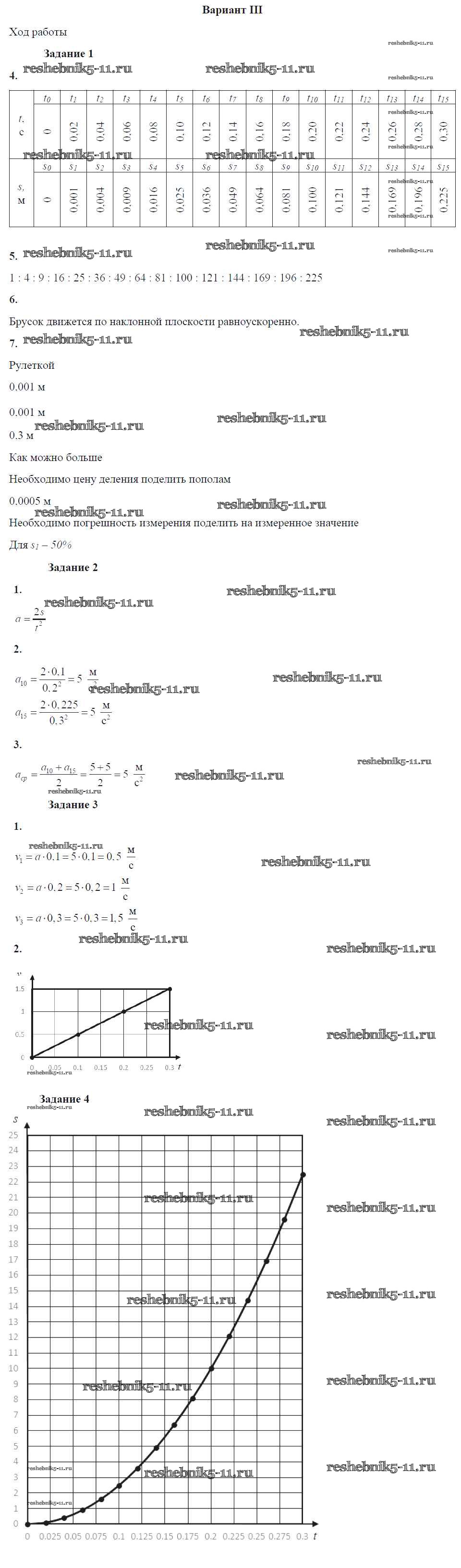 Готовая домашняя работа с ответами по Физике за 9 класс Минькова, Иванова Тетрадь для лабораторных работ УМК Экзамен 2017 ФГОС - Лабораторная работа 1. Варианты 3