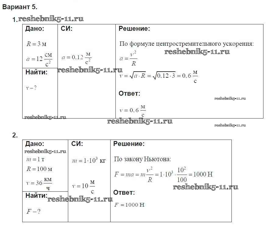 Готовая домашняя работа с ответами по Физике за 9 класс Марон Дидактические материалы УМК Дрофа 2019 ФГОС - СР-10. Варианты 5