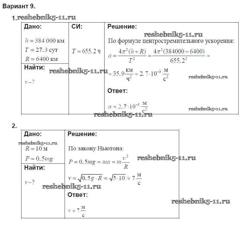 Готовая домашняя работа с ответами по Физике за 9 класс Марон Дидактические материалы УМК Дрофа 2019 ФГОС - СР-10. Варианты 9