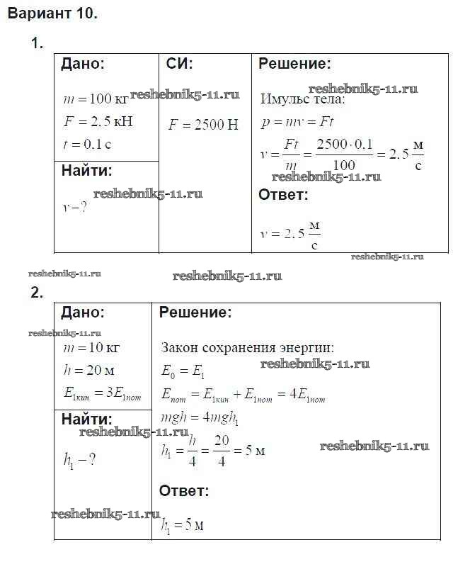 Готовая домашняя работа с ответами по Физике за 9 класс Марон Дидактические материалы УМК Дрофа 2019 ФГОС - СР-11. Варианты 10