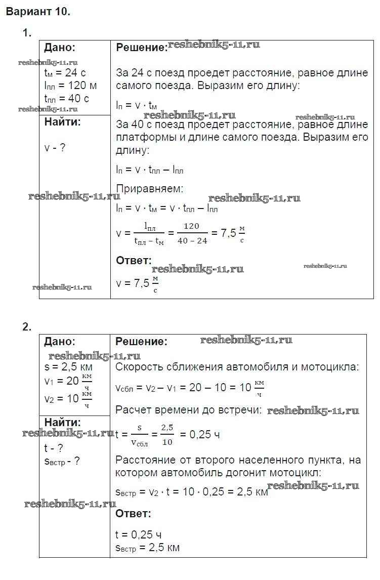 Готовая домашняя работа с ответами по Физике за 9 класс Марон Дидактические материалы УМК Дрофа 2019 ФГОС - СР-2. Варианты 10