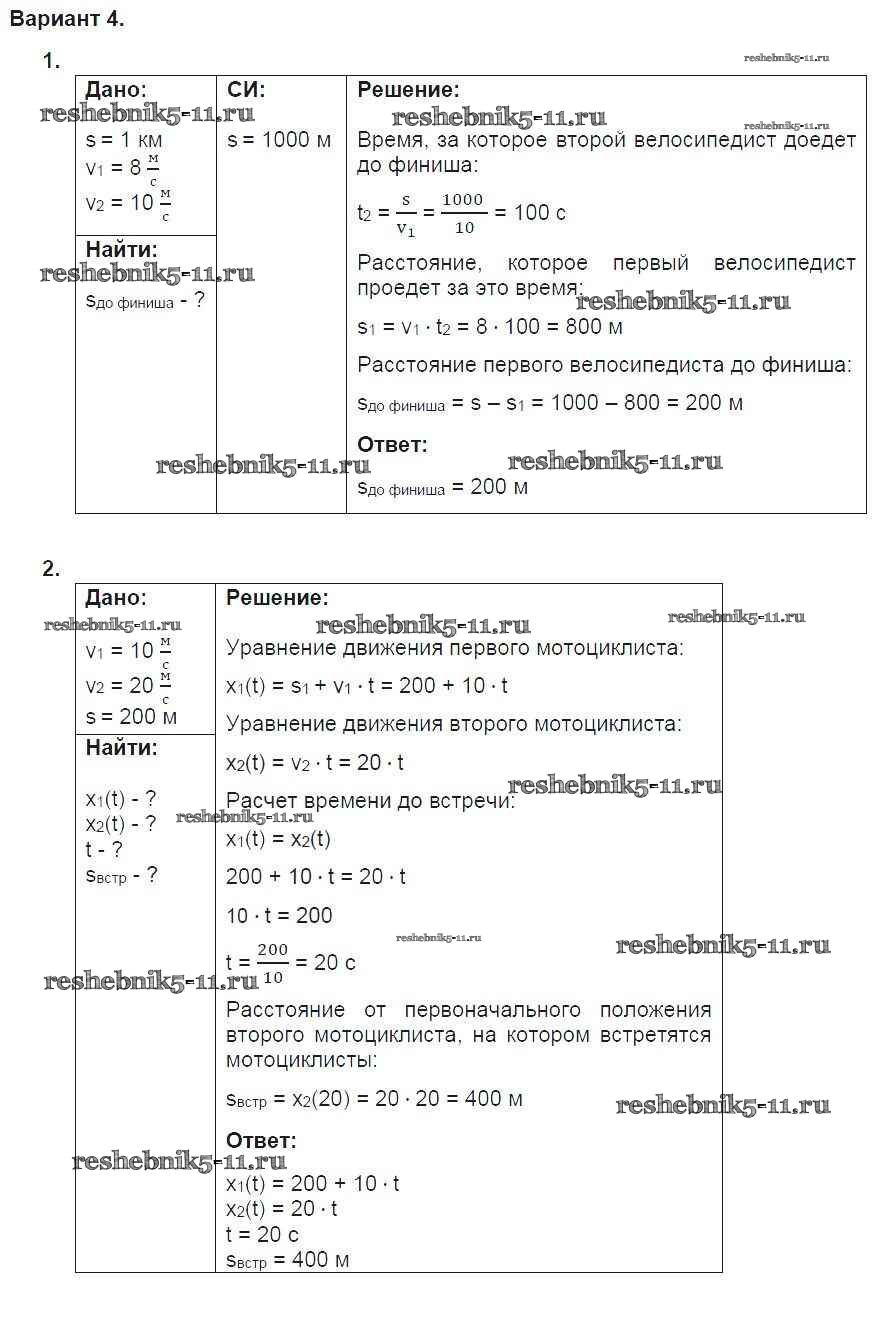 Физика за 9 класс Марон Дидактические материалы УМК Дрофа ср-2. вариант 4