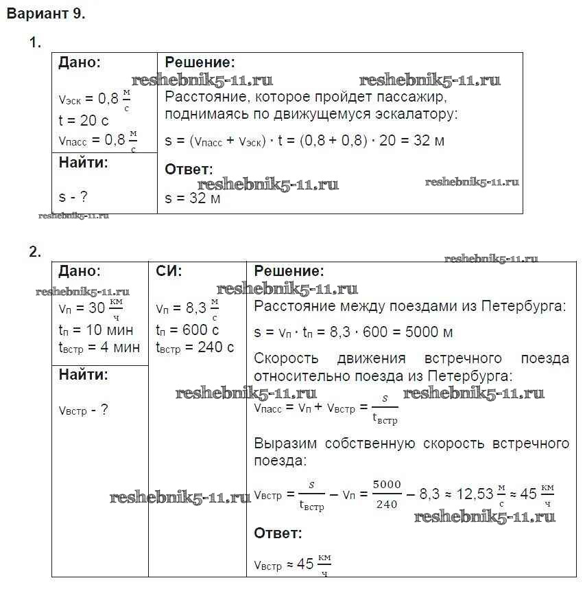 Готовая домашняя работа с ответами по Физике за 9 класс Марон Дидактические материалы УМК Дрофа 2019 ФГОС - СР-4. Варианты 9