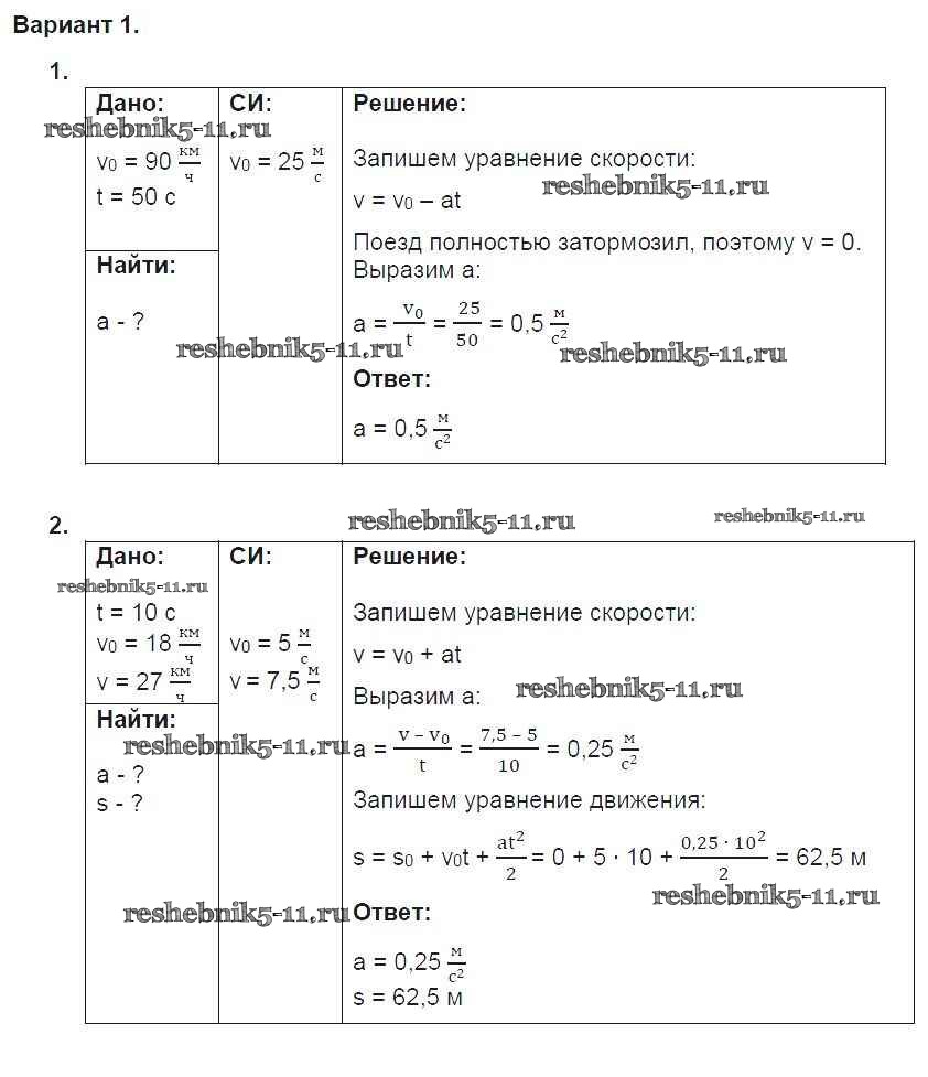 Физика за 9 класс Марон Дидактические материалы УМК Дрофа ср-5. вариант 1