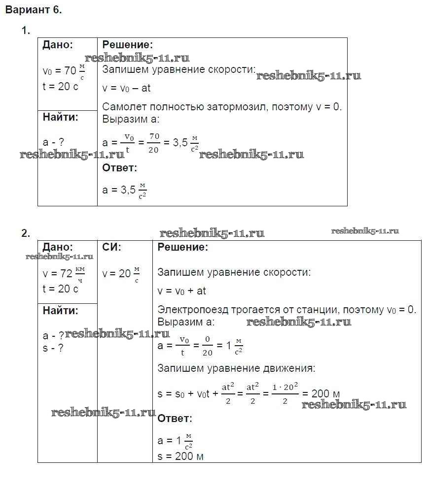 Физика за 9 класс Марон Дидактические материалы УМК Дрофа ср-5. вариант 6