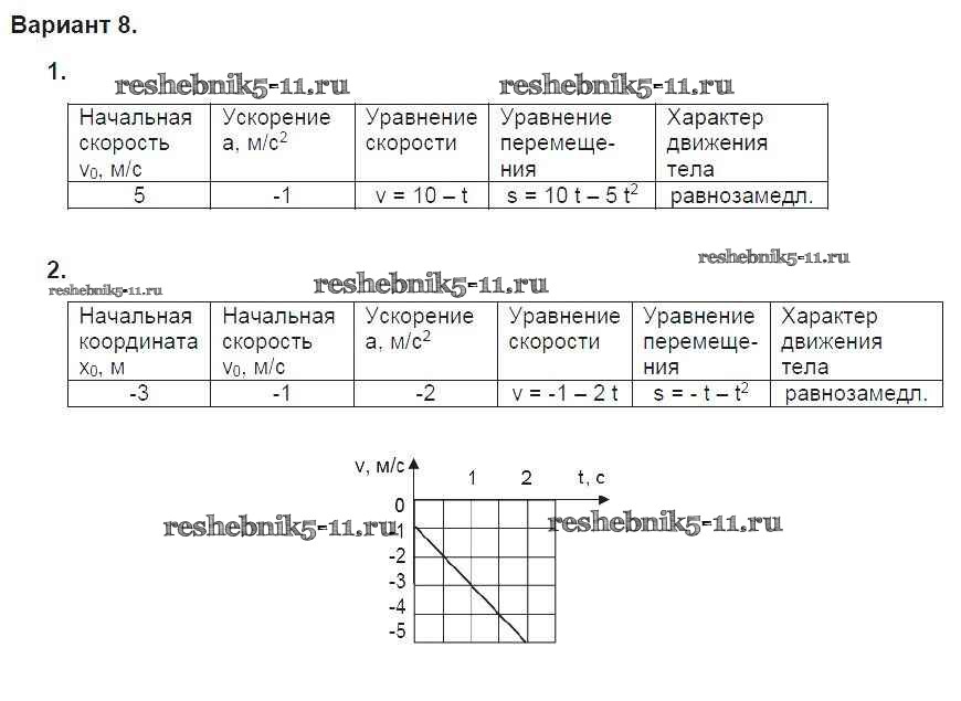 Физика за 9 класс Марон Дидактические материалы УМК Дрофа ср-6. вариант 8