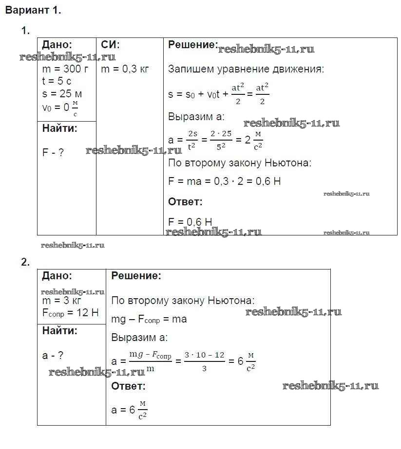 Готовая домашняя работа с ответами по Физике за 9 класс Марон Дидактические материалы УМК Дрофа 2019 ФГОС - СР-7. Варианты 1
