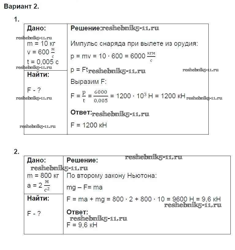 Готовая домашняя работа с ответами по Физике за 9 класс Марон Дидактические материалы УМК Дрофа 2019 ФГОС - СР-7. Варианты 2