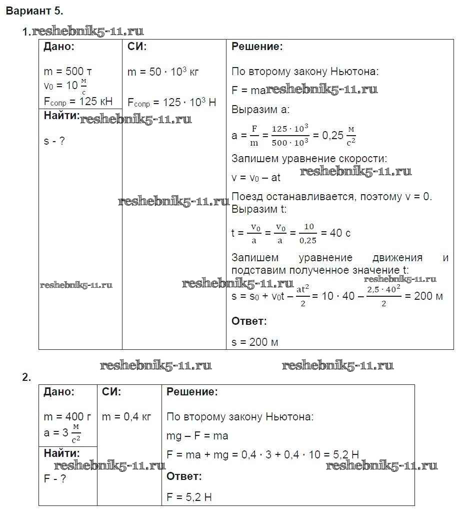 Готовая домашняя работа с ответами по Физике за 9 класс Марон Дидактические материалы УМК Дрофа 2019 ФГОС - СР-7. Варианты 5