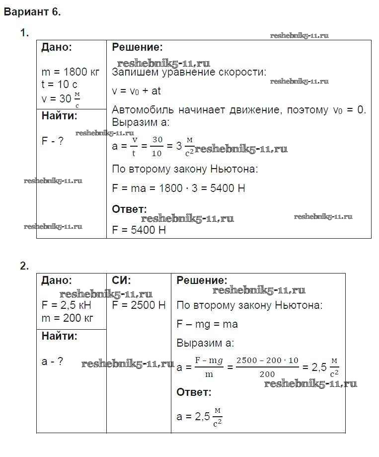 Готовая домашняя работа с ответами по Физике за 9 класс Марон Дидактические материалы УМК Дрофа 2019 ФГОС - СР-7. Варианты 6