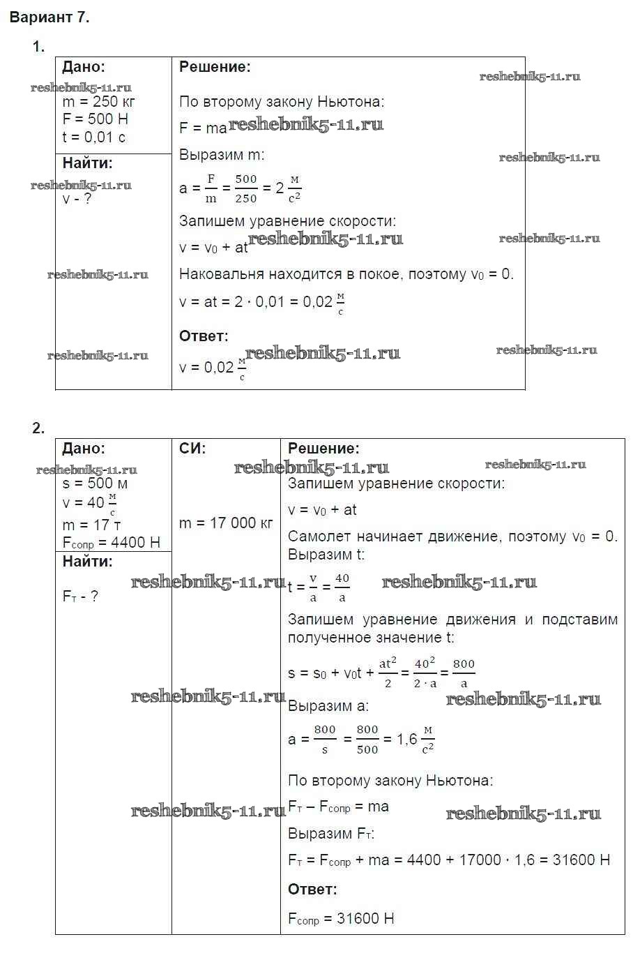 Готовая домашняя работа с ответами по Физике за 9 класс Марон Дидактические материалы УМК Дрофа 2019 ФГОС - СР-7. Варианты 7