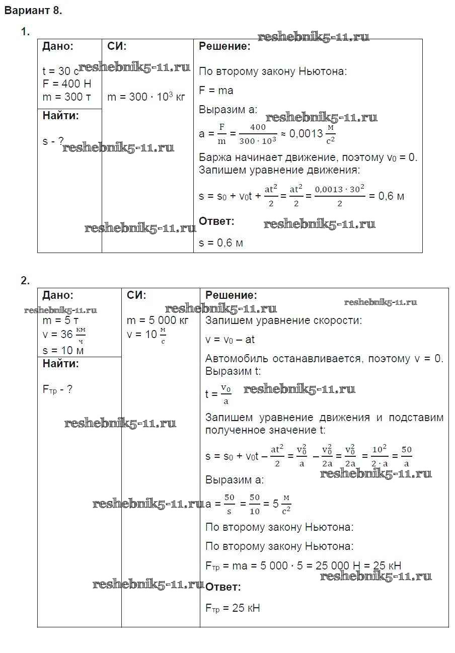 Готовая домашняя работа с ответами по Физике за 9 класс Марон Дидактические материалы УМК Дрофа 2019 ФГОС - СР-7. Варианты 8