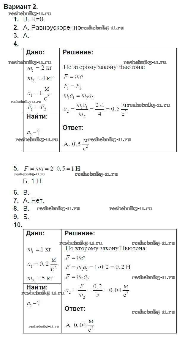 Готовая домашняя работа с ответами по Физике за 9 класс Марон Дидактические материалы УМК Дрофа 2019 ФГОС - Тест 3. Варианты 2