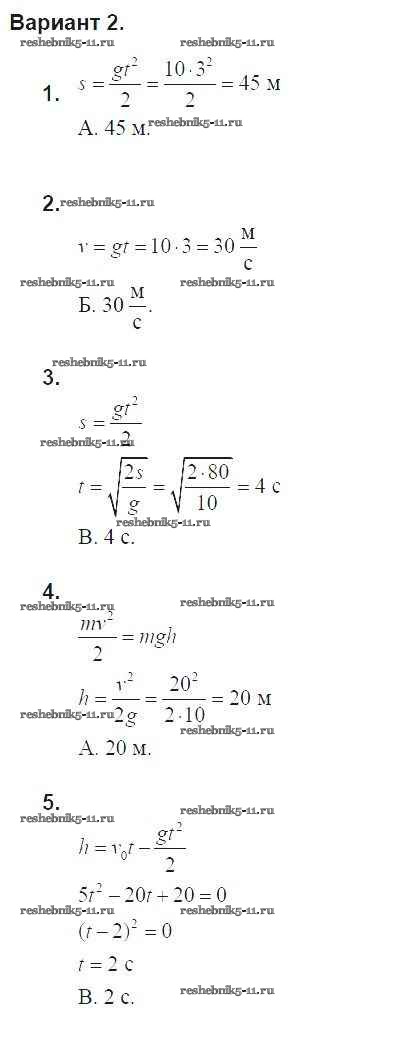 Готовая домашняя работа с ответами по Физике за 9 класс Марон Дидактические материалы УМК Дрофа 2019 ФГОС - Тест 4. Варианты 2