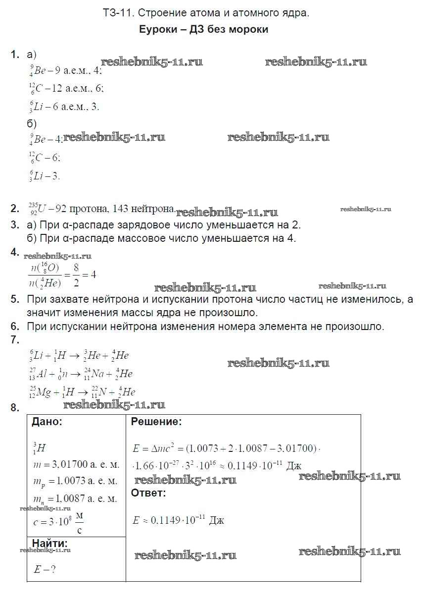 Готовая домашняя работа с ответами по Физике за 9 класс Марон Дидактические материалы УМК Дрофа 2019 ФГОС - Тренировочные задания 11