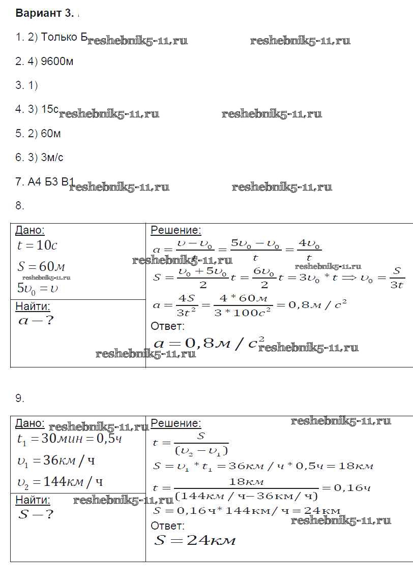 Готовая домашняя работа с ответами по Физике за 9 класс Громцева Контрольные и самостоятельные работы УМК Экзамен 2017 ФГОС - 2. Варианты 3