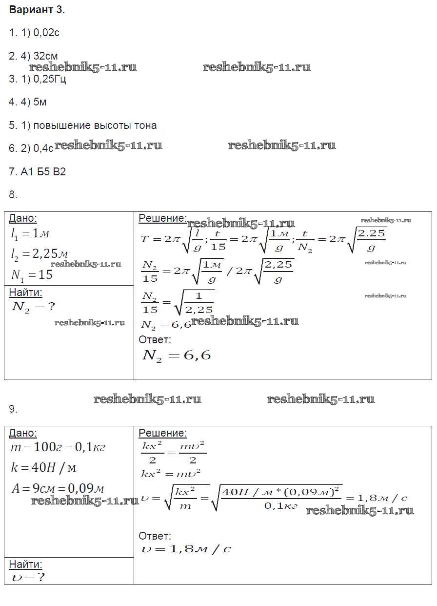 Готовая домашняя работа с ответами по Физике за 9 класс Громцева Контрольные и самостоятельные работы УМК Экзамен 2017 ФГОС - Глава 2. Варианты 3