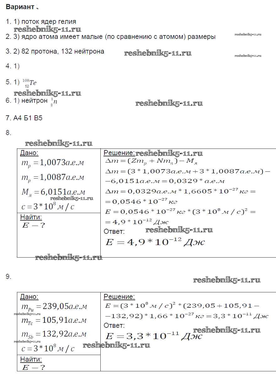 Готовая домашняя работа с ответами по Физике за 9 класс Громцева Контрольные и самостоятельные работы УМК Экзамен 2017 ФГОС - Глава 4. Варианты 3