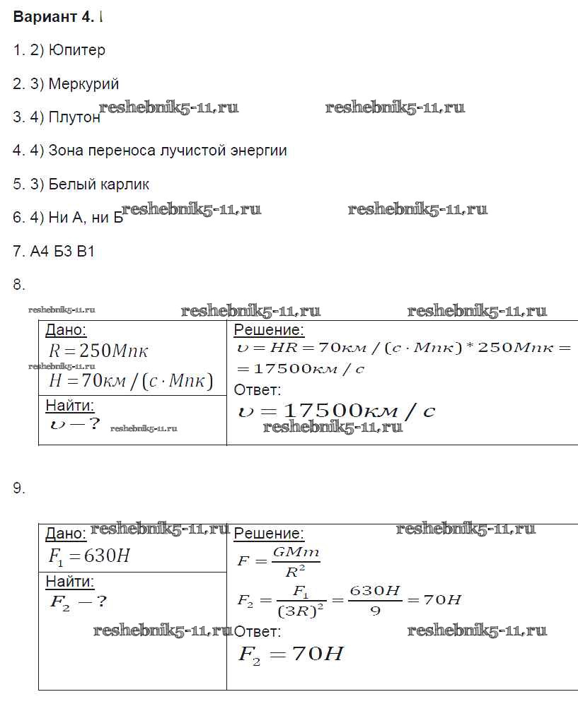 Готовая домашняя работа с ответами по Физике за 9 класс Громцева Контрольные и самостоятельные работы УМК Экзамен 2017 ФГОС - Глава 5. Варианты 4