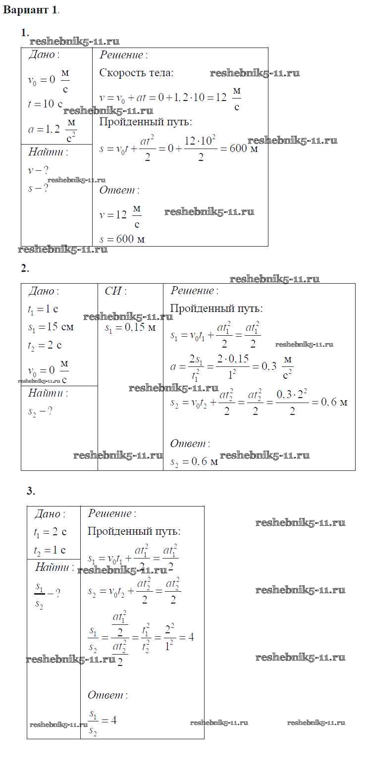 Физика за 9 класс Марон Самостоятельные и контрольные работы УМК Дрофа ср-8. вариант 1