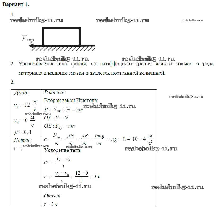 Готовая домашняя работа с ответами по Физике за 9 класс Марон Самостоятельные и контрольные работы УМК Дрофа 2018 ФГОС - СР-2. Варианты 1